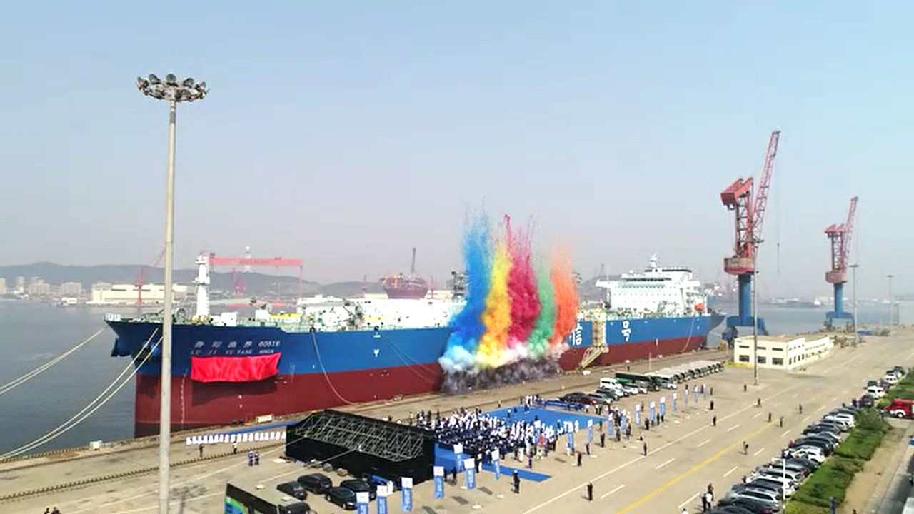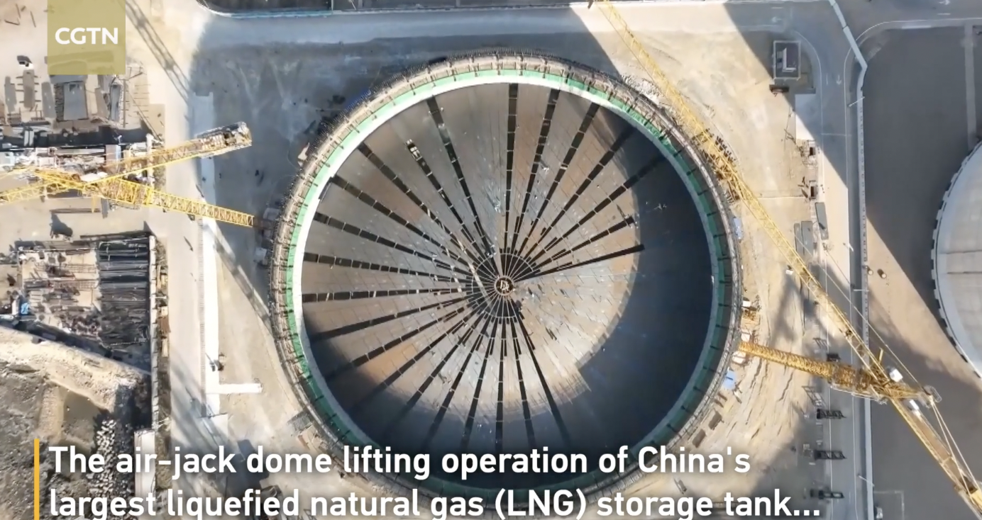 China’s largest LNG storage tank finishes dome lifting operation in Qingdao